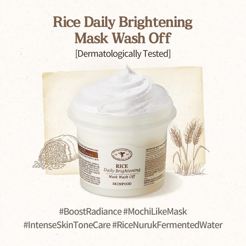 SKINFOOD Rice Daily Mask 210g - Rice Exfoliating Scrub Wash Off Face Masks for Darken Skin - Facial Cleanser, Pore Exfoliator, Clean and Soften Body Skin - Safe For Men and Women (7.40 oz)