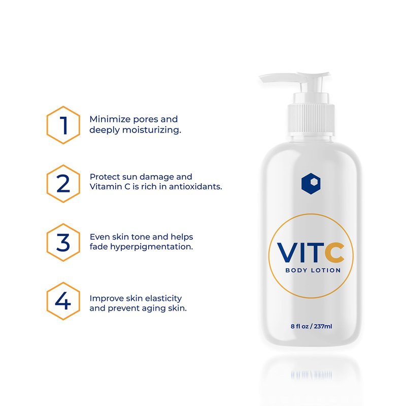 - Vitamin C body lotion boosts skin hydration and protects from environmental elements. Vitamin C is known for its antioxidant properties which help to neutralize free radicals.