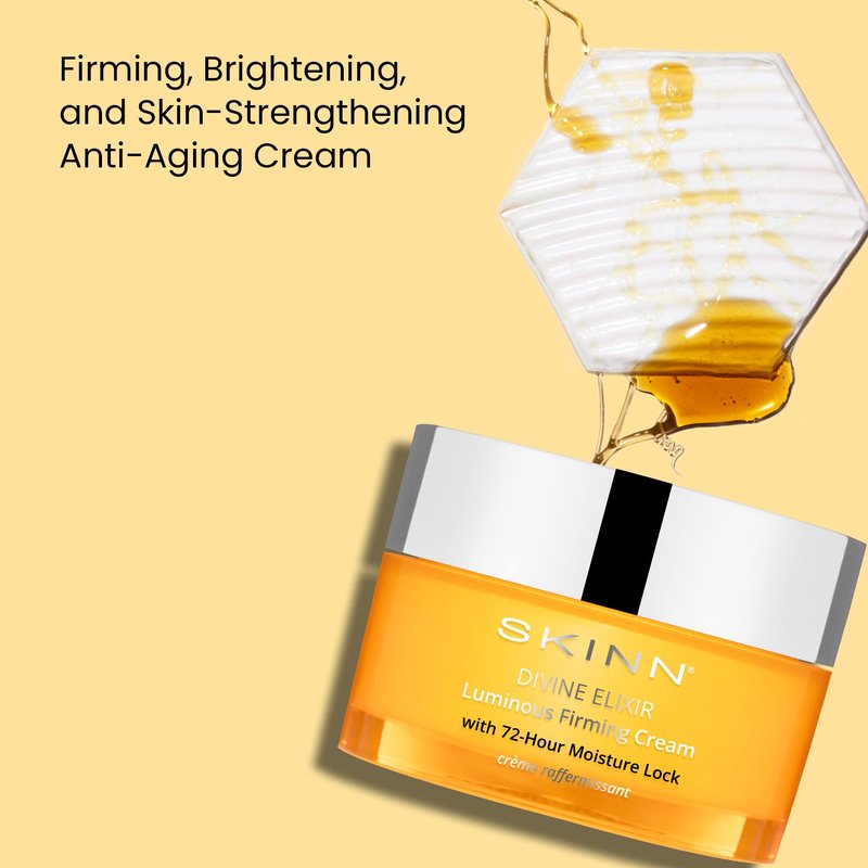 - Divine Elixir: Featuring a Patented Firming Complex and Wild Rosella Extract, SKINN Luminous Firming Cream helps firm, improve elasticity, and maintain optimal hydration levels for 72 hours after application. This divine formula works to quickly reduce the appearance of fine lines and wrinkles, making it ideal for anyone wanting to maintain or restore youthful skin. Includes one 1.7oz container.