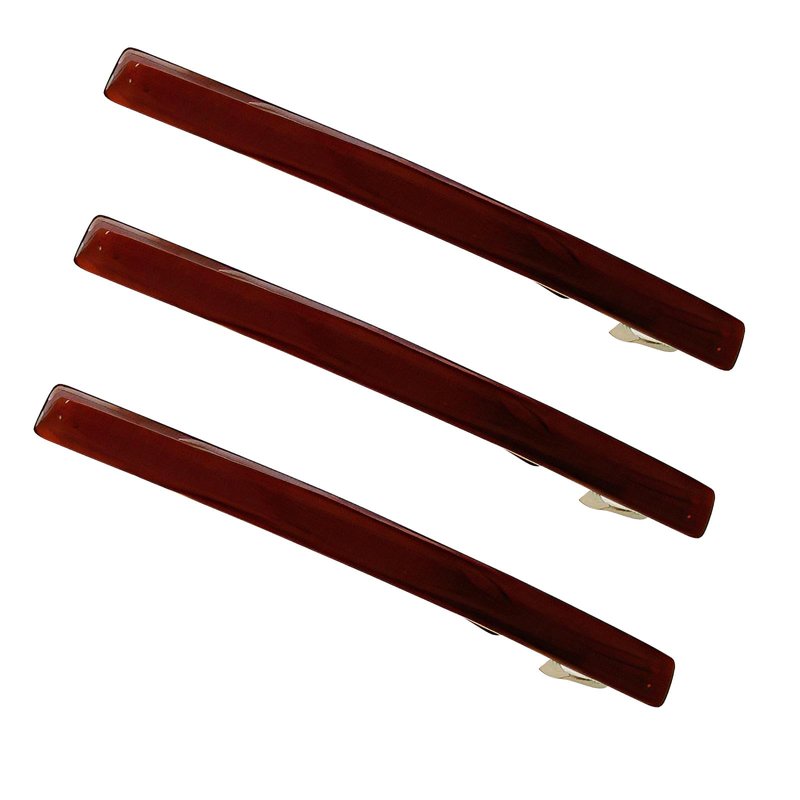 Skinny Slim Tortoise Shell Acetate French Barrettes Flat Acrylic Hair Clips For Fine, Kinky Hair Strong Hold Cute Hair Styling Ponytail Holder for Girls,3 Pcs (Brown)