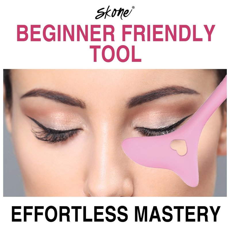 EFFORTLESS BEGINNINGS: SKONE’S EYELINER STENCIL - EMPOWERING NOVICE CREATIVITY Tailored for beginners, our eyeliner stencil kit introduces an innovative beauty solution. The mascara applicator guard and eyeliner aid tool make achieving professional-looking eyeliner a seamless experience, empowering you to explore and express your creativity with newfound confidence. Redefine your gaze, unveil your unique beauty, and embrace the artistry of makeup with the Skone Cosmetics Eyeliner Stencil - a true masterpiece of elegance.