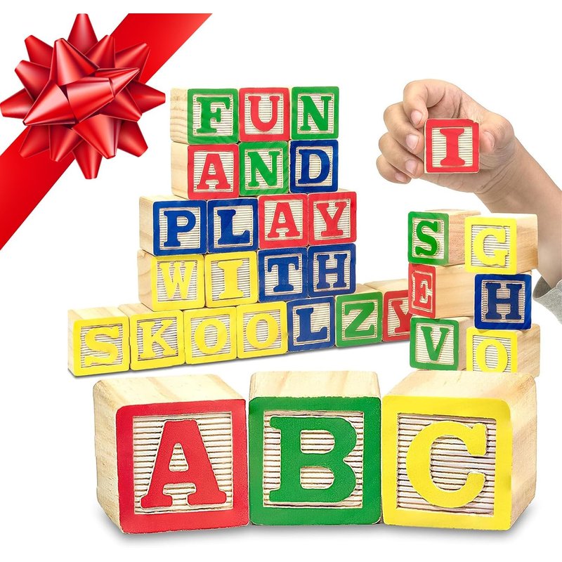 Skoolzy Wooden Alphabet Blocks - 30 ABC Wooden Blocks for Toddlers - Wood Alphabet Stacking Toys - Alphabet Learning Toys Ages 2 +