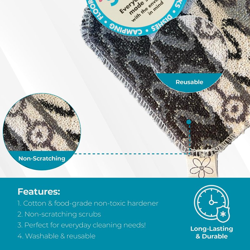 - Reusable and Long-lasting Dish Scrub: A new concept in kitchen scouring pads, the Skoy Scrub is a reusable scrub made from cotton and a food grade non-toxic hardener that outlasts traditional scrubbers