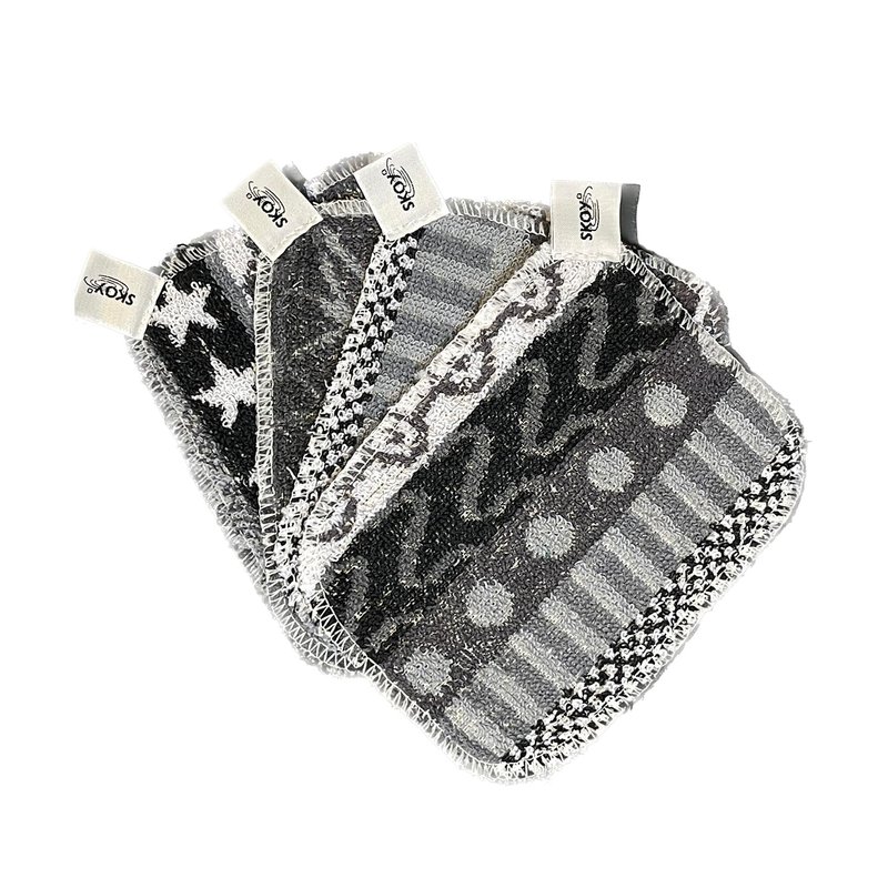 Skoy Scrub, 4-Pack Non-Scratching, Reusable Scrub for Kitchen and Household Use, Environmentally-Friendly, Dishwasher Safe, Monochromatic Colors