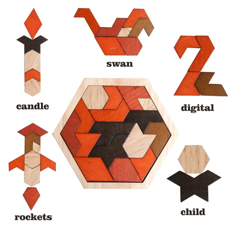 Skrtuan Wooden Puzzle Hexagon Tangram Puzzle for Kids Adults Brain Teasers Puzzles Game Challenge Toy Shape Pattern Block Tangram Family Portable Montessori Educational Gift for All Ages Boys Girls