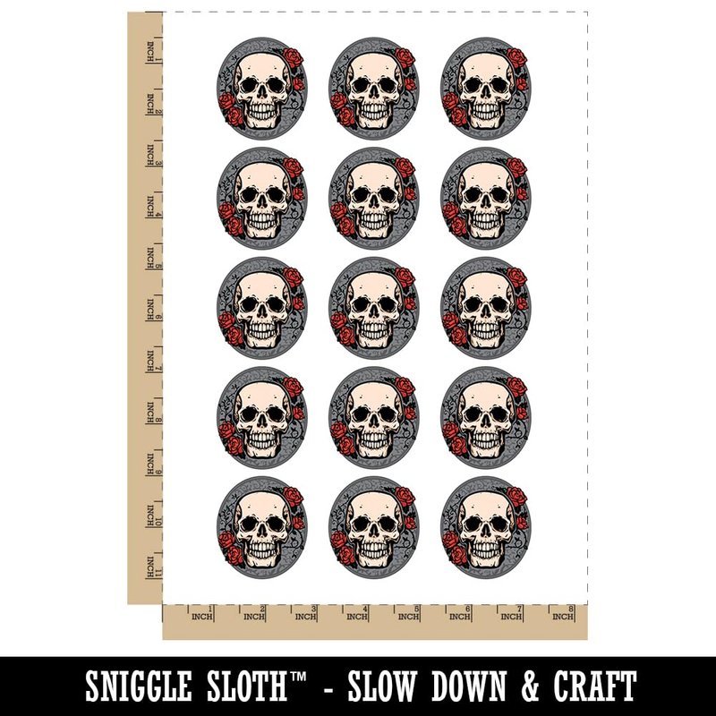 Skull and Roses Flowers Bones Temporary Tattoo Water Resistant Fake Body Art Set Collection - 15 2" Tattoos (1 Sheet)