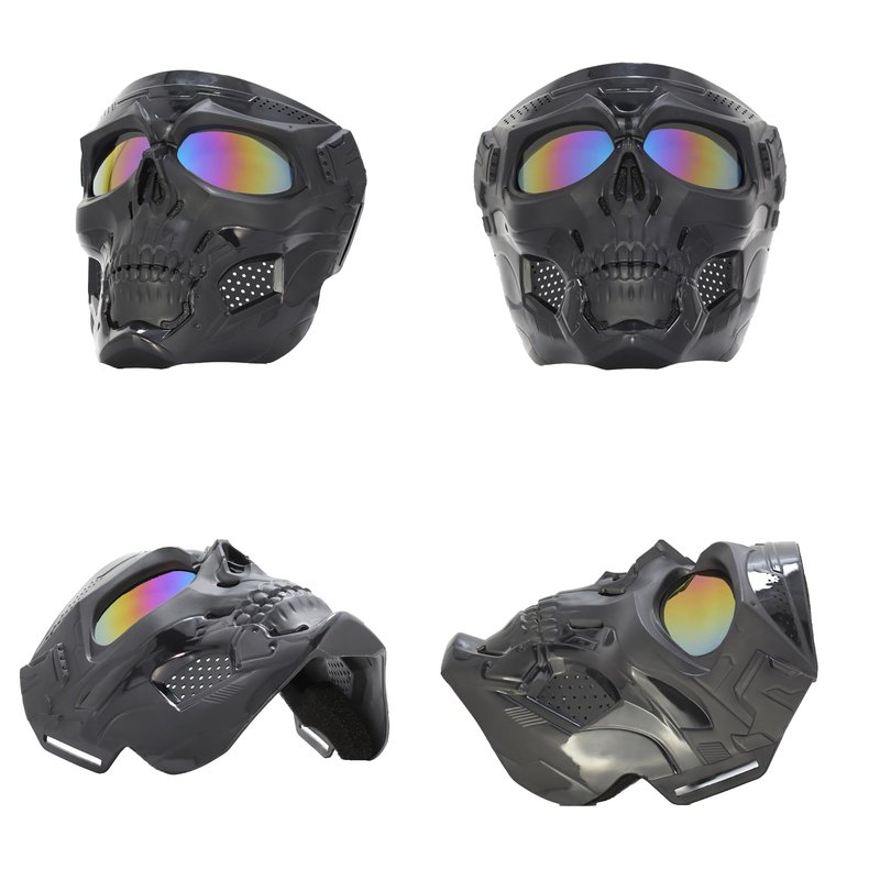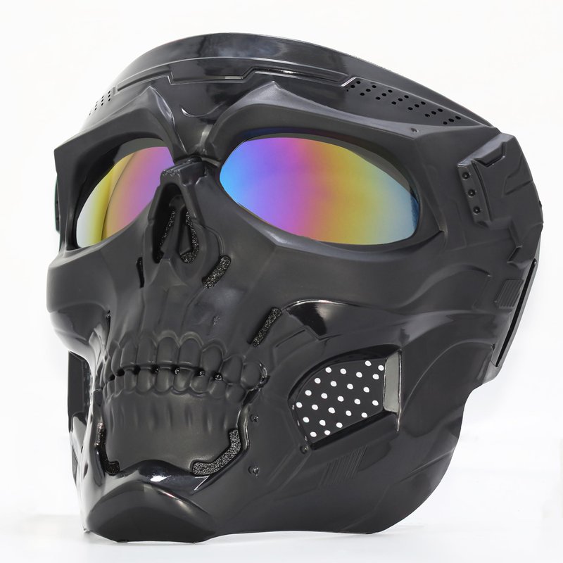 Skull Face Mask Full Face, Motorcycle Mask, Airsoft Mask, Tactical Mask, Paintball Mask for Men Women (Colourful Lenses)