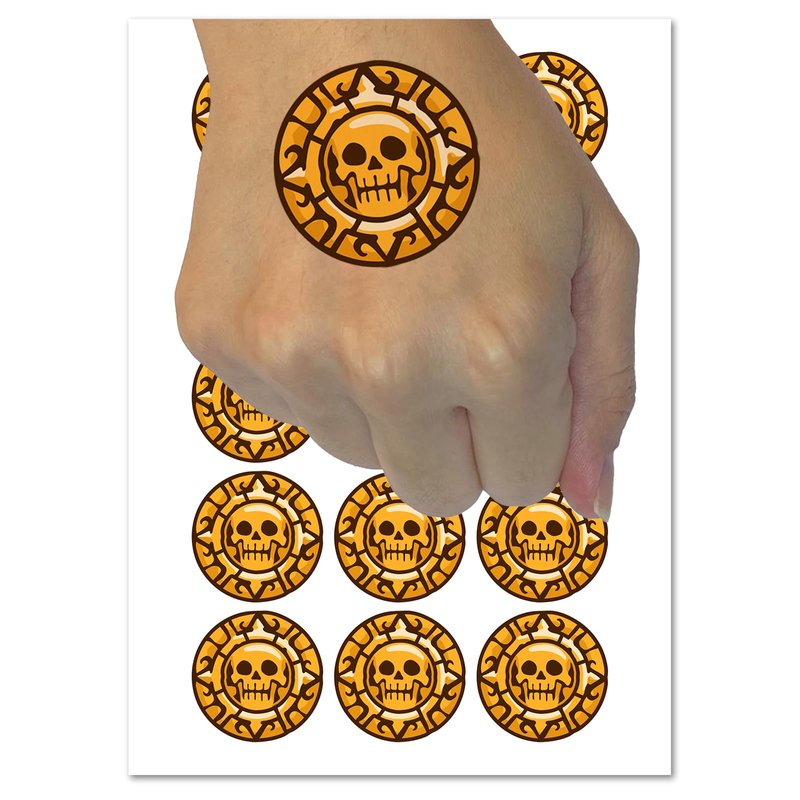 Skull Pirate Coin Temporary Tattoo Water Resistant Fake Body Art Set Collection - 15 2" Tattoos (1 Sheet)