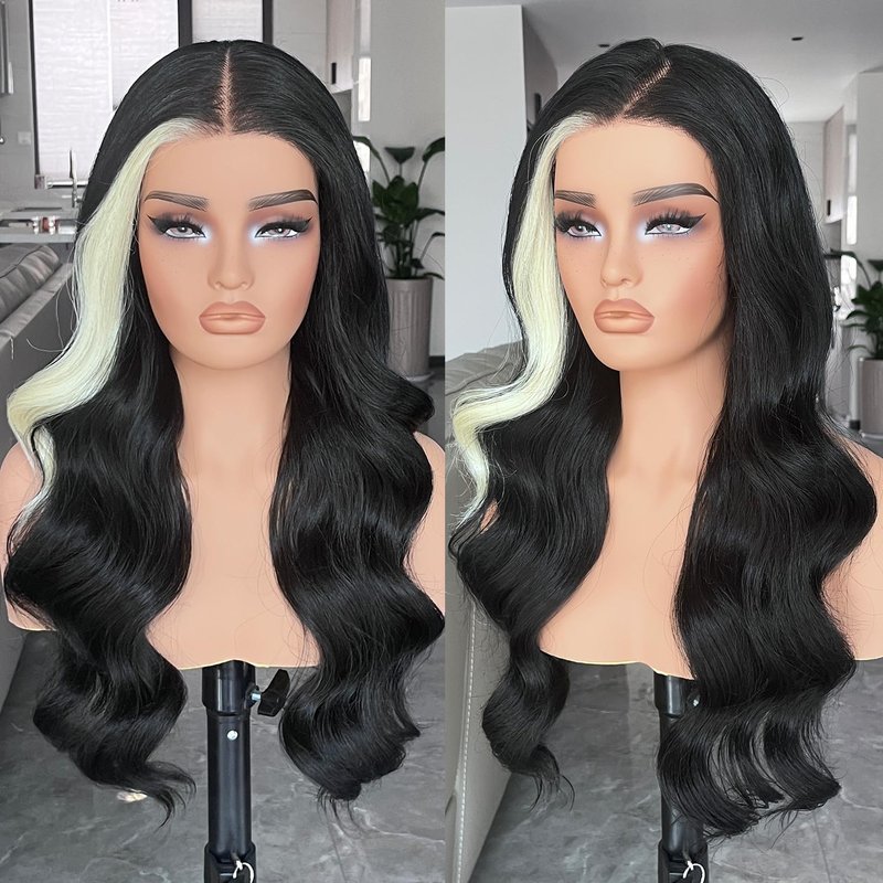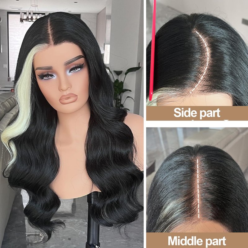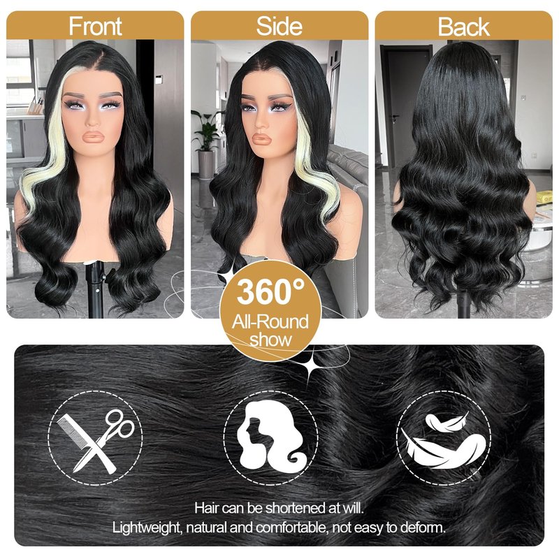 Skunk Stripe Lace Front Wig, 6x5 Wear and Go Glueless Body Wave Synthetic lace front Wigs, 26Inch Pre Plucked Pre Cut HD Lace Frontal Wig With Hair (Skunk Stripe, 6x5)