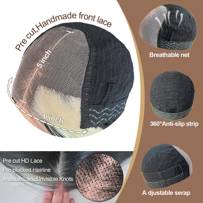 - Glueless Lace Front Wigs Design Detail:HD Transparent Lace Make It More Stable and More Natural Looking When Wearing.the Hair Has a Shaping and Can Remain Unchanged for a Long Time. Layered Design with no Tangles on the Hair. There Is Also a Bandage Design at the Back, Allowing Customers to Choose According to Their Own Needs, Making It More Stable to Wear. The Lace on the Front of the Headband Has Strong Wrapping and Is Not Easy to Raise It Up.