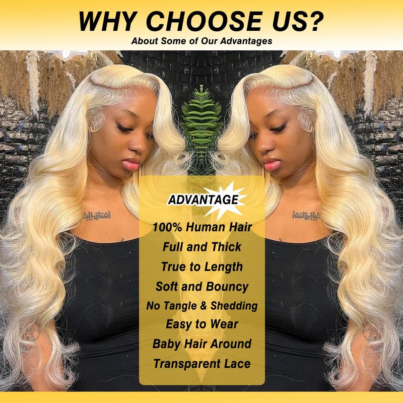 - Blonde Body Wave Lace Front Wigs Advantage: 613 Lace frontal wigs human hair, 180% density, full and thick, true to length, can be dyed; permed; bleached; straightened; curled and restyled as your like. Rreusable, can last for longer time with good care