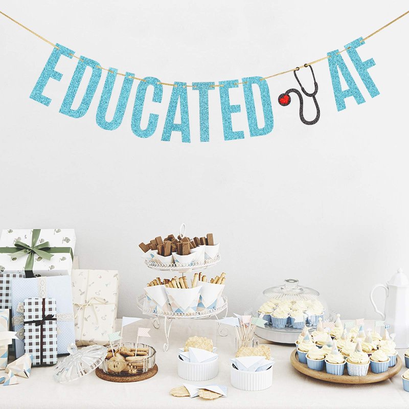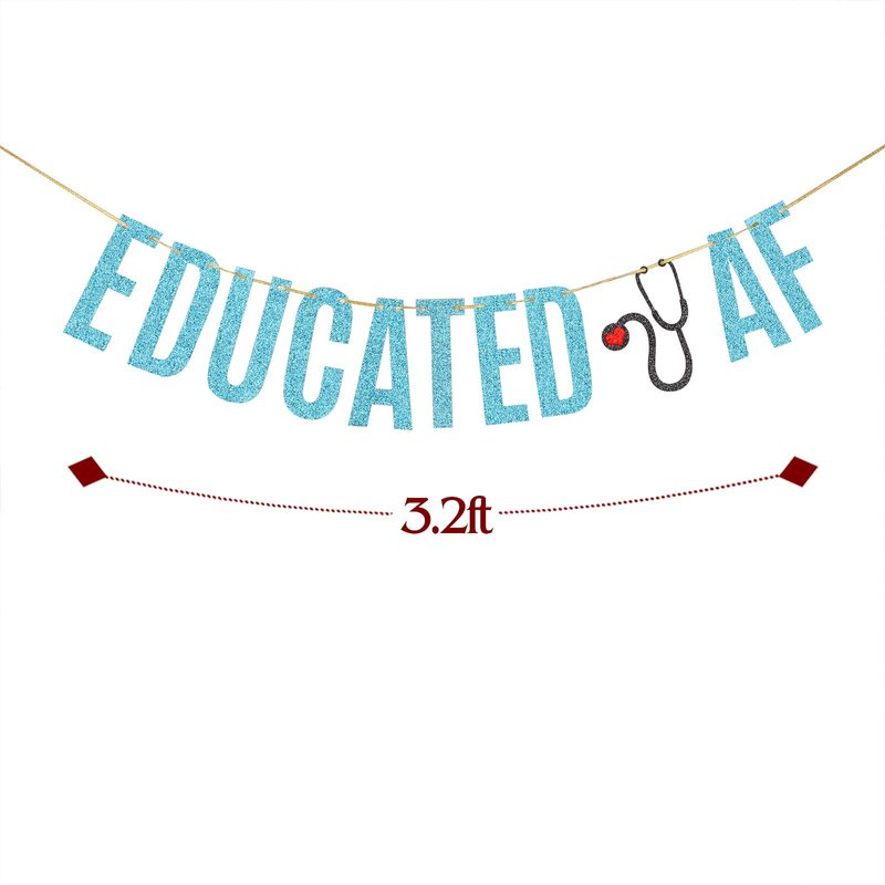 Sky Blue Glitter Educated AF Banner Nurse RN Doctor Grad Party Banner Congrats Gollege Medical Graduation Party Decorations Supplies