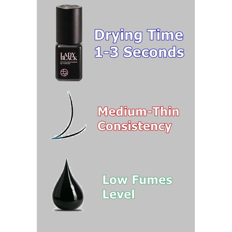 - It's performance will not drop off quickly outside of the recommended humidity level and hence top lash professionals often consider Lady Black a "must have" in their lash supplies.