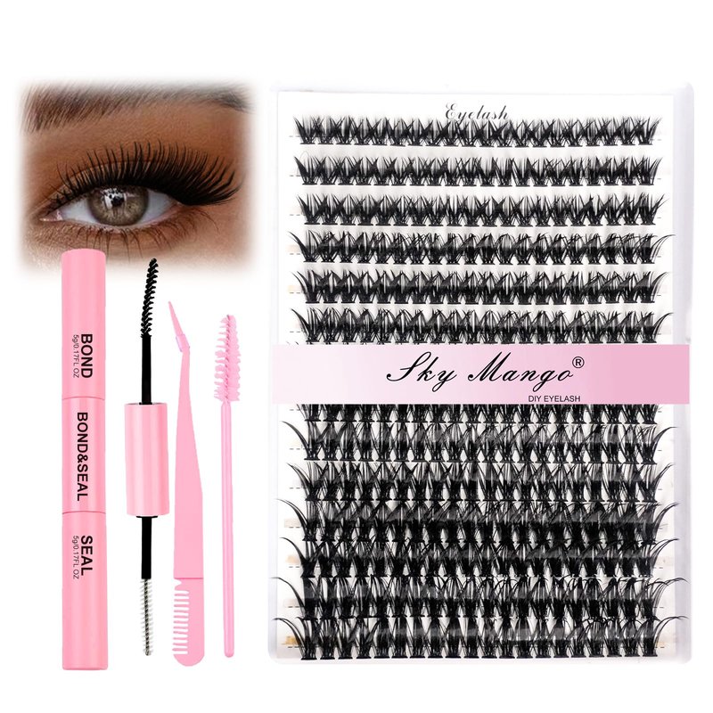 SKY MANGO DIY Lash Extension Kit 280pcs Clusters Eyelash Extension Kit 40D 8-16mm Individual Lashes Kit with Lash Bond and Seal, Lash Tweezers, Lash Brush for Beginners