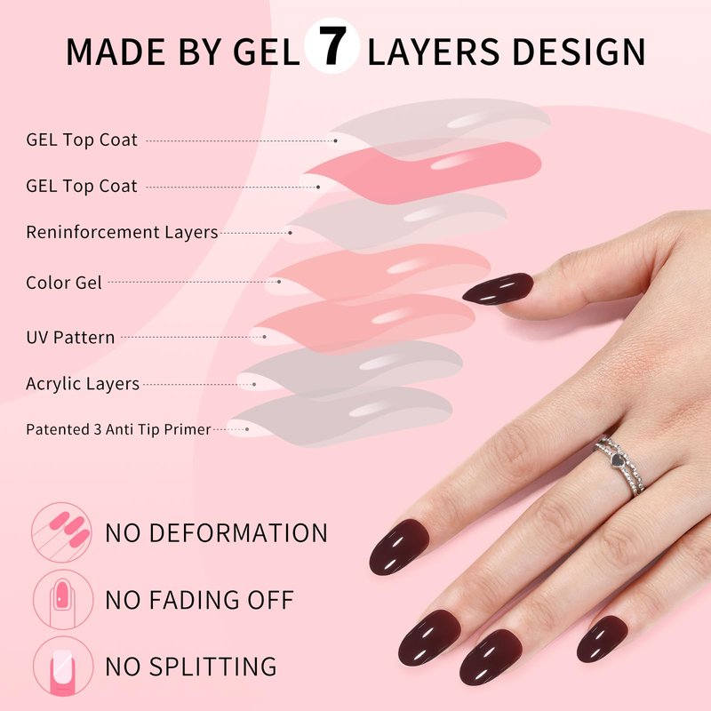 Made by Gel: We made these press on nails completely follow the handmade process(base coat, color gel, pattern, top coat). The color and patterns are made by gel polish instead of printed by ink. Get salon-like nails in 5 mins!