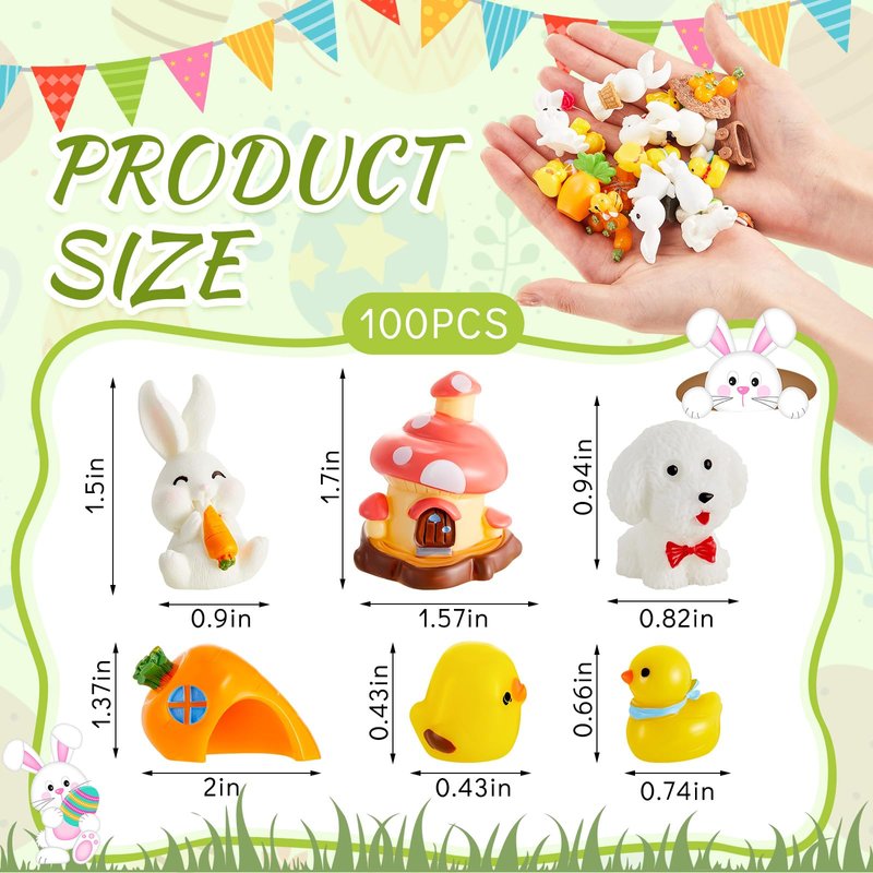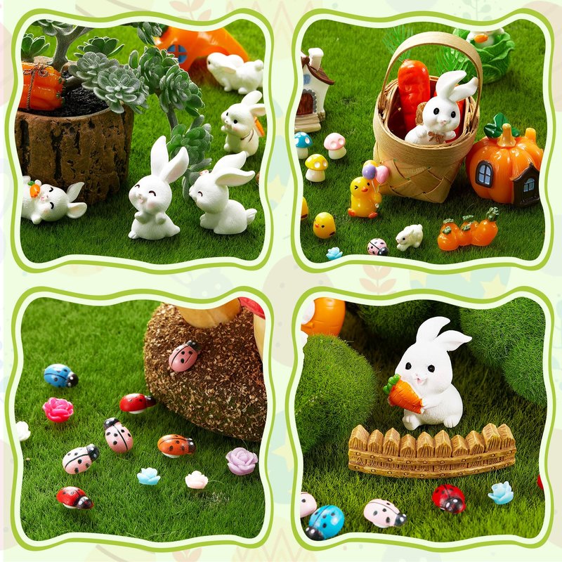 Skylety 100 Pieces Mini Rabbit Carrot Figurines Easter Bunny Carrot Figures Resin Duck Miniatures Figurines Tiny Resin Animal Figurine Micro Landscape Dollhouse Ornament for DIY Easter Bunny Garden