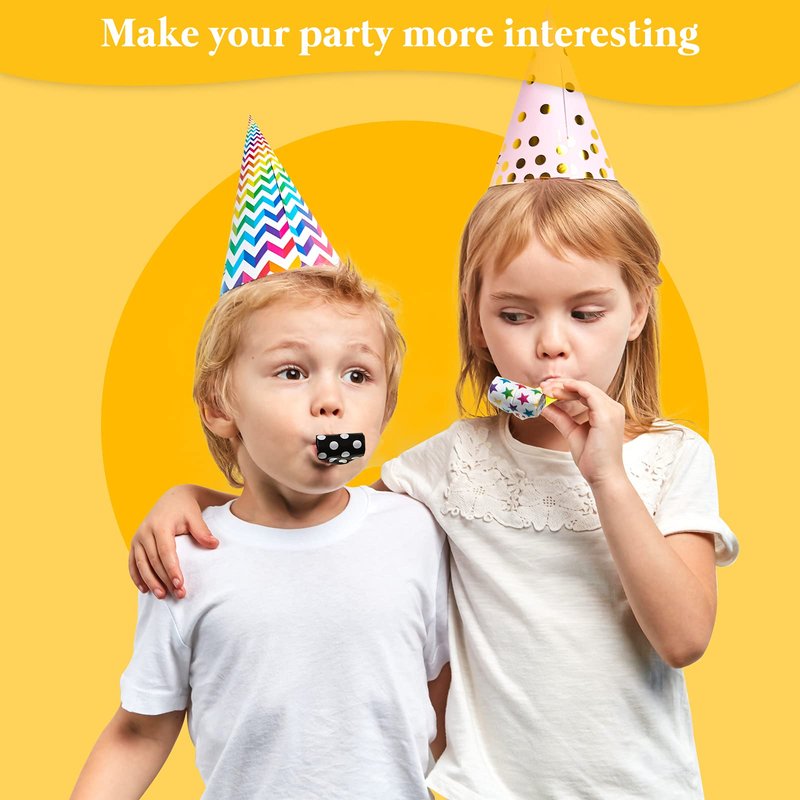 These birthday whistle blowers are very popular on many occasions, such as baby's birthday parties, baby shower parties, Children's Day, festive celebrations, outdoor activities.