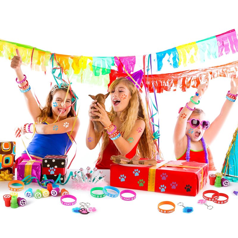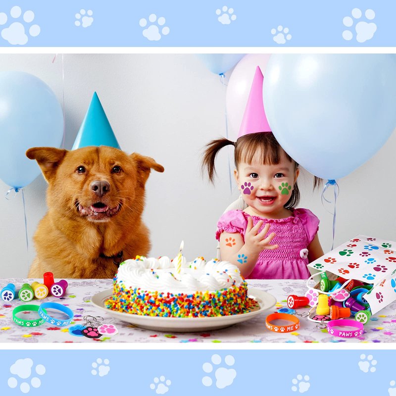- Nice gifts and rewards: paw print bracelets, stampers, stickers and keychains are very suitable for dog paw theme parties, puppy party supplies, picnics, carnival prizes, cute dog party gifts, party return gifts, gift bag fillings, Halloween party gifts, Christmas stockings fillings, etc.