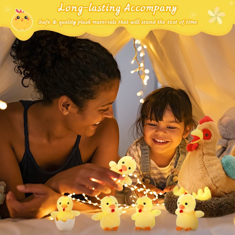 - Wide Range of Use: the mini stuffed furry hen chicken toys set are not only nice farm party favors to share your joy with family and friends, but also attractive decorations to make your party more interesting and impressive on Christmas, Valentine's Day, weddings, birthday and so on