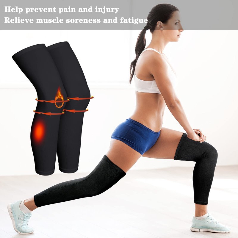 - Practical outdoor sport sleeve: compression full leg sleeves are designed to help you get the support you need to be comfortable day and night, helping you prevent pain such as leg pain, tibial splints, leg pinching, muscle soreness, fatigue, swelling, varicose veins and spider veins, etc, Note: please check the size list carefully before buying; The leg sleeve material is elastic; If you want more compress, you can buy a smaller size