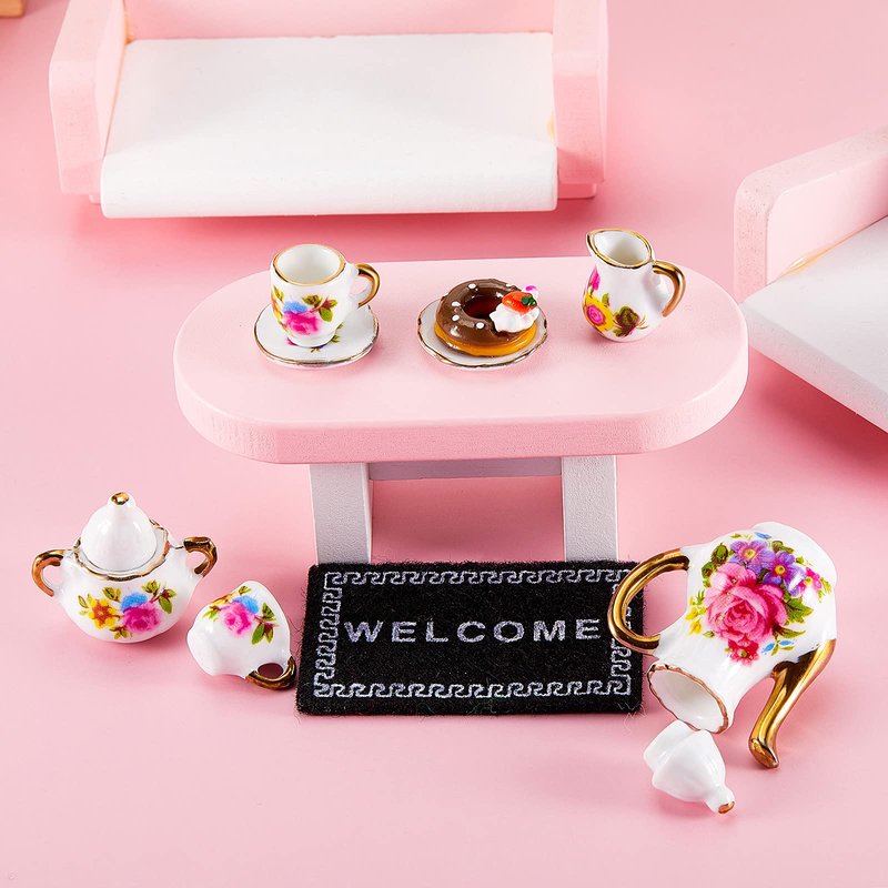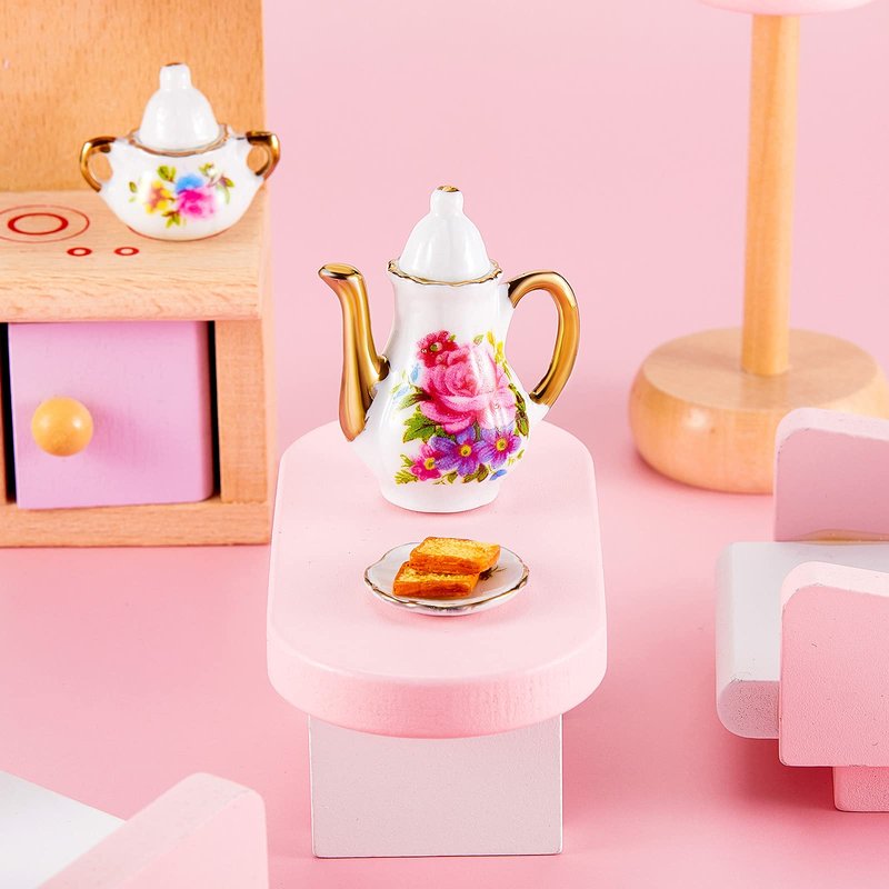 - Vintage and exquisite: this kitchen miniature porcelain set is printed with exquisite flower pattern in sweet pink color, adding elegance and vintage touch to your dollhouse; And it can fill your dollhouse with life scent and make your dollhouse close to realistic life