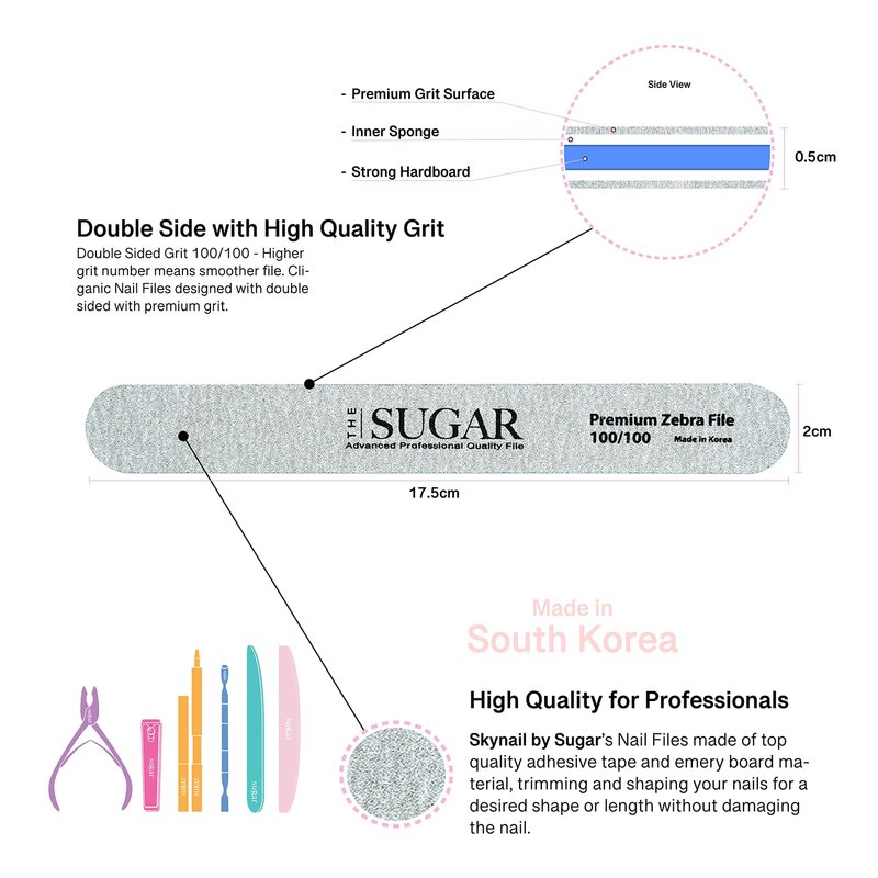 Skynail by Sugar 5PCS Nail File Set Grit 100/100 Professional Long-Lasting Reusable Double Sided Emery Board Nail Styling Tools for Home and Salon Professionals