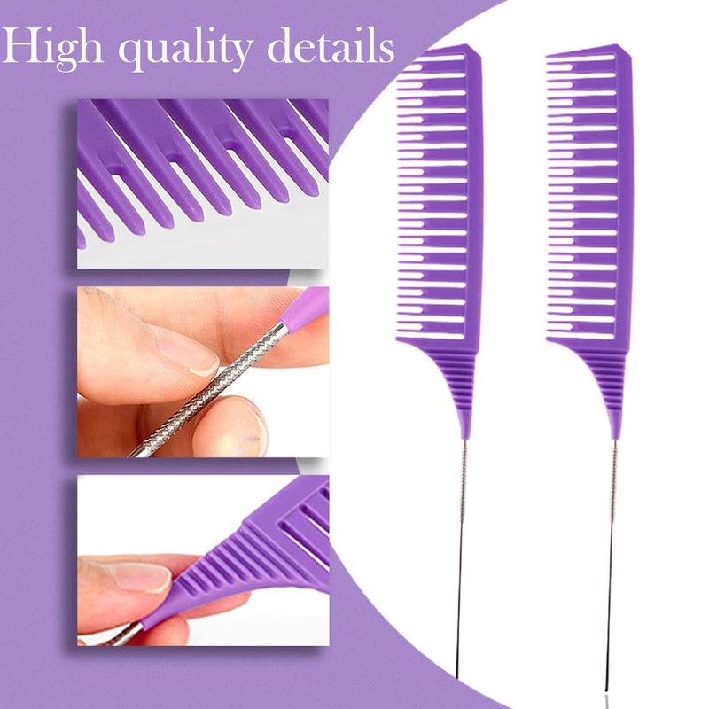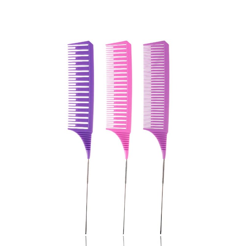 SKYPIA 3 Piece Professional Dyeing Hair Comb Set Highlight Combs for Hair Stylist Weaving Styling Brush Set with Long Stainless Steel Rat Tail Stylist Combs for Hair (Purple & Pink)……