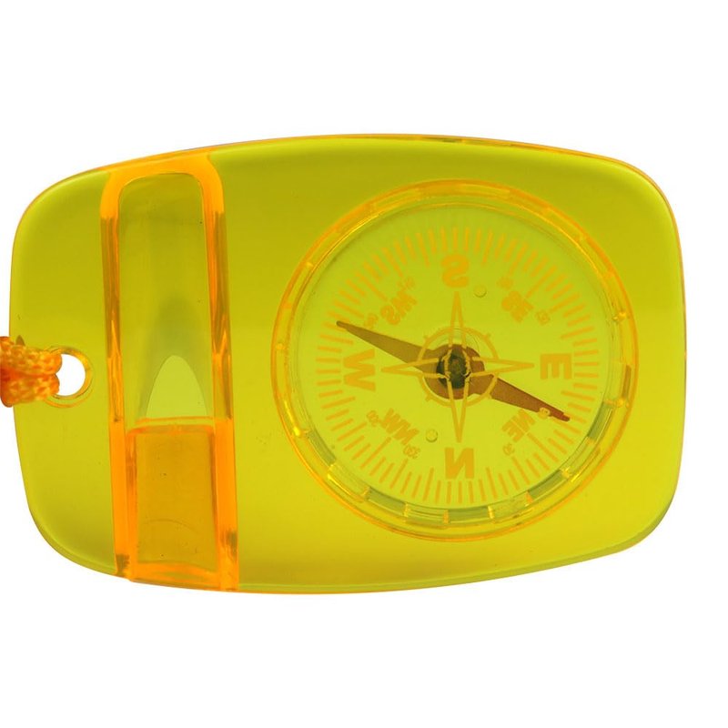 Whether hiking in the mountains or taking children on a camping trip, this mini-compass is the perfect, economically priced tool to bring along. It is crafted of durable acrylic, with brightly colored dial readings. These directional readings include Cardinal and Ordinal points in 5-degree graduations. It features a built-in safety whistle for emergencies. Easily transport around your neck with the attached lanyard.