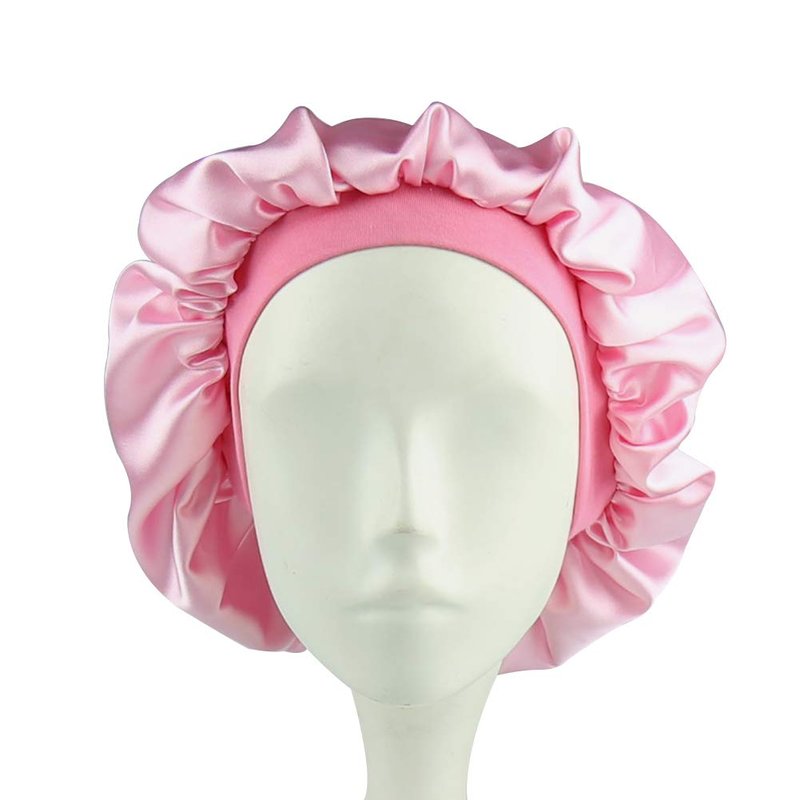 This double-layered satin bonnet is more smooth and softer than single-layered satin sleeping cap.