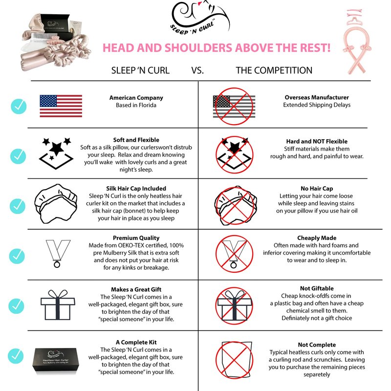 - ✅♡ HEATLESS CURLS = ZERO DAMAGE: The Sleep 'N Curl heatless curler set delivers impeccable curls without putting your hair at risk from heat damage. Pamper yourself and get the salon-styled hair you always wanted. The Sleep ‘N Curl will give you effortless waves, curls, or glamorous loose waves without the heat damage from hairdryers or curling irons.