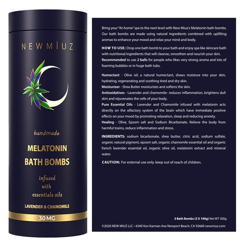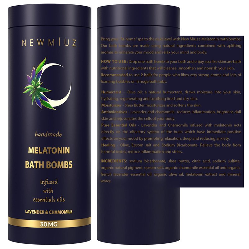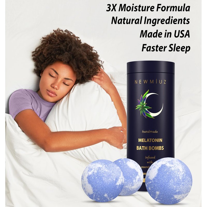 New Miuz's Large Sleep Bath bombs gift sets. The perfect way to unwind! Rich in melatonin warm and cozy relaxing lavender and chamomile essential oils and nutrients. Our effective Bubble bath formula will surprise you! Be free from sleepless nights with New Miuz's Luxury Spa Bath Bomb fizzer for shower is packed in beautiful packaging. We use only the highest quality ingredients to create the purest and most effective Bath Bombs in the USA today. bath bomb gift set for women bath products for women luxury bath relaxing products for women LAVENDER BATH BOMB CHAMOMILE BATH BOMB premium bath bomb gift set bath bombs gift set fizzies sleep gift set for women LUXURY BATH BOMBS bath soak sleep Calming bath bombs LUXURY SLEEP GIFT Benefits of Melatonin Sleep Bath bombs Promotes Deep Sleep Relaxation Hydrates Moisturize Helps with skin conditions We recommend using sleep aromatherapy bath bombs: After Long Days of Stress to unwind relax! Before Sleep Before your regular Skin Care routine to further moisture and soothe dry skin Your New Ideal Bath Companion you cannot go without!