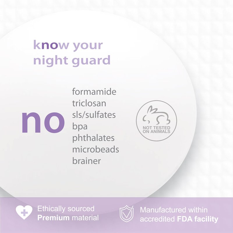 - BPA AND FORMAMIDE FREE: High quality trays are both BPA and Formamide FREE made from Ethically sourced Premium dental grade material ensuring the Sleepette mouth guard for grinding teeth at night will safely protect your teeth from the forces of impact generated by night time bruxism and jaw clenching.