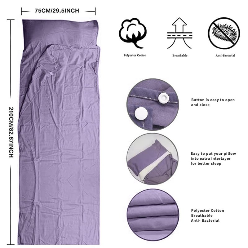Sleeping Bag Liner, Travel & Camping Sheet for Adults, Lightweight and Compact Insert with Velcro - Comfortable Sleep Liners for Traveling, Hotel and Camping (Purple)