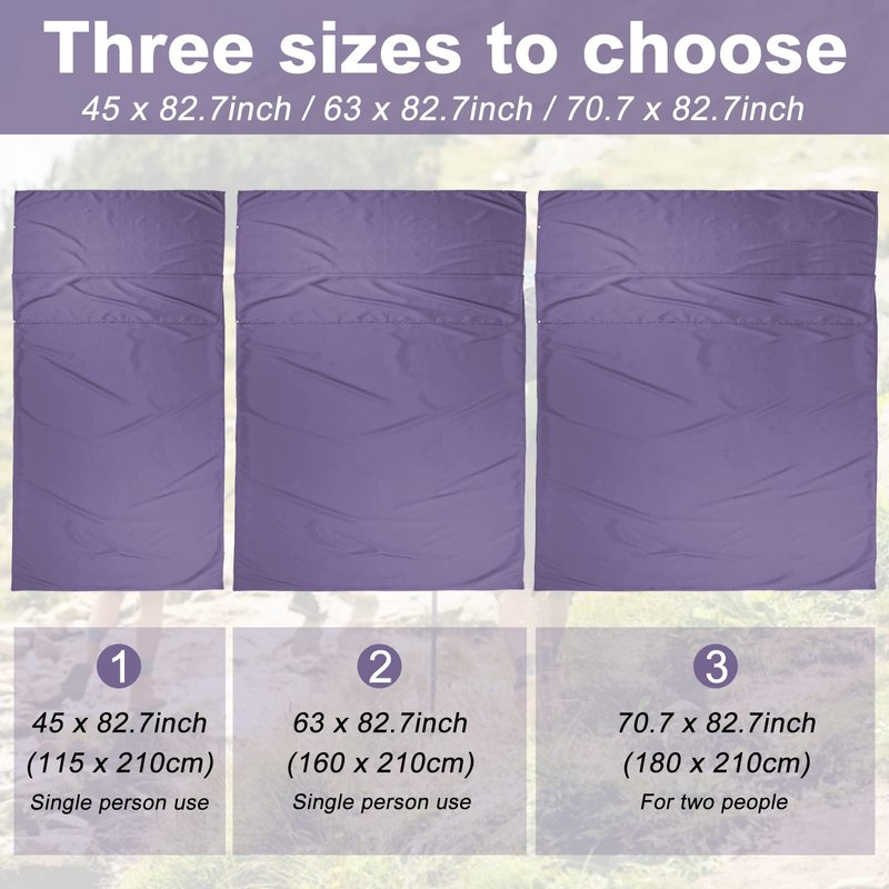 - ✿GENEROUS SPACE:Two sizes available.The liner is 45 x 82.7inch(115 x 210cm)/ 63 x 82.7inch(160 x 210cm) which gives even tall people space to move around and stretch out the legs.It can be travel sheet, lightweight sleeping bag, travel sleeping sack thanks to its good humanized size.