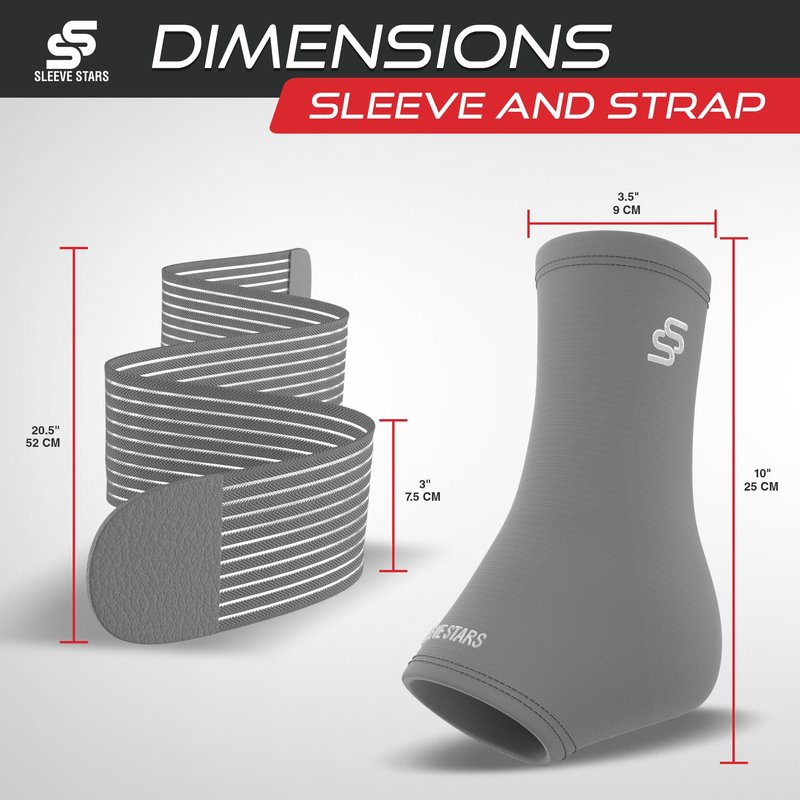 Sleeve Stars Ankle Brace for Sprained Ankle, Plantar Fasciitis Relief Achilles Tendonitis Brace, Ankle Support for Women & Men with Strap, Heel Protector Wrap for Pain & Compression (Single/Gray)