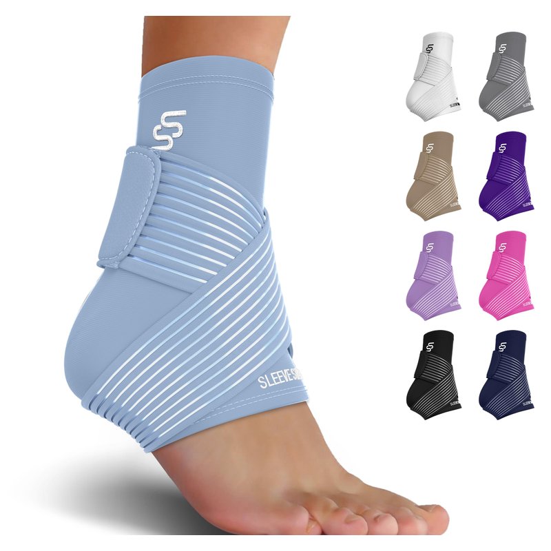 Sleeve Stars Ankle Support for Ligament Damage & Sprained Ankle, Plantar Fasciitis Support & Achilles Tendonitis Pain Relief, Ankle Brace for Women & Men w/Compression Ankle Strap (Single/Light Blue)