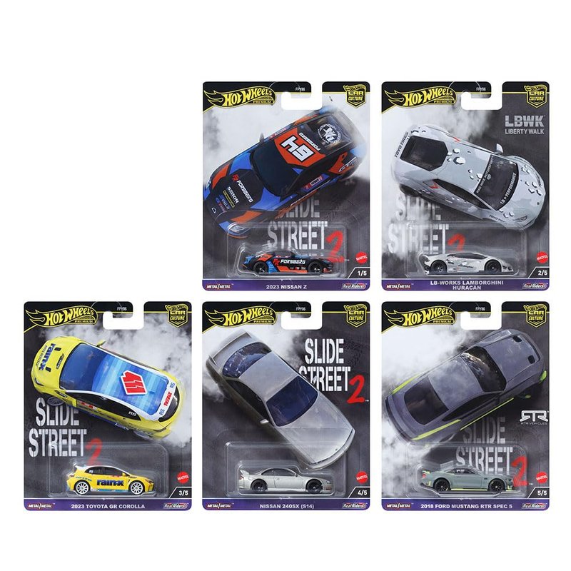 Brand new diecast car models of "Slide Street 2" 5 piece Set "Car Culture" 2024 Series H die cast model cars FPY86-959H
