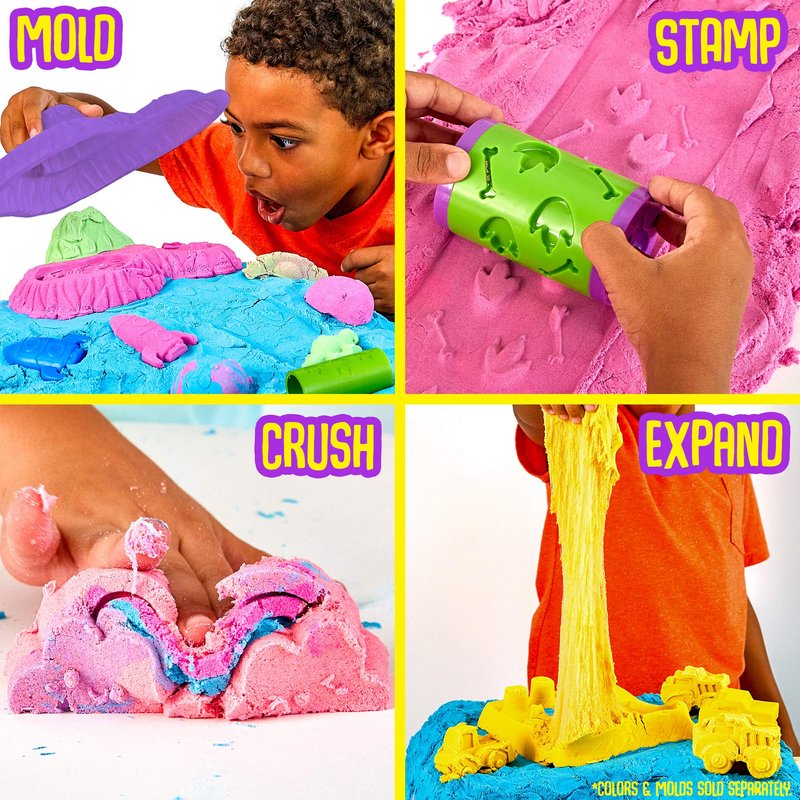 - EXTENDED PLAY: Use stamps, molds, rollers and sand toys to play all day Build it up, then knock it down; mold it and stretch it; roll and marbleize it