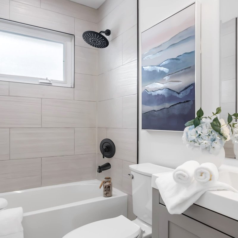 This Pull-Up Diverter Tub Spout in matte black is a quick and easy way to update your shower. The tub spout features a sleek, simple design that pairs beautifully with most bathroom. This wall-mount bath spout also includes a diverter to easily switch between spout and shower components.