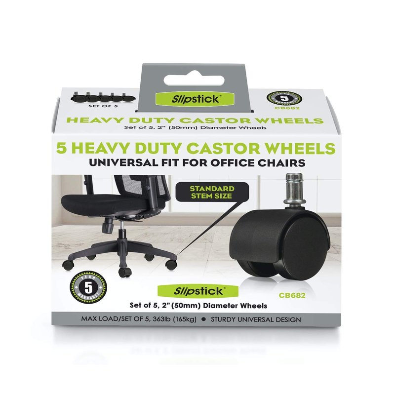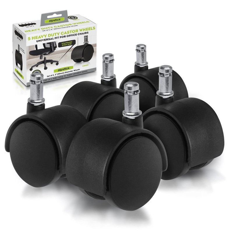 Slipstick CB682 2 Inch Replacement Office Chair Wheels (Set of 5 Casters) Universal Standard Size Stem 7/16 Inch x 7/8 Inch - Black Plastic
