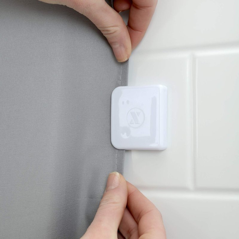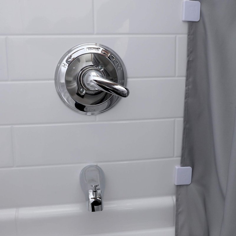 - Peel-and-stick shower curtain clips keep your shower curtain flush against your shower walls to cut down on leaks and splashes.