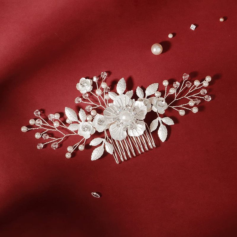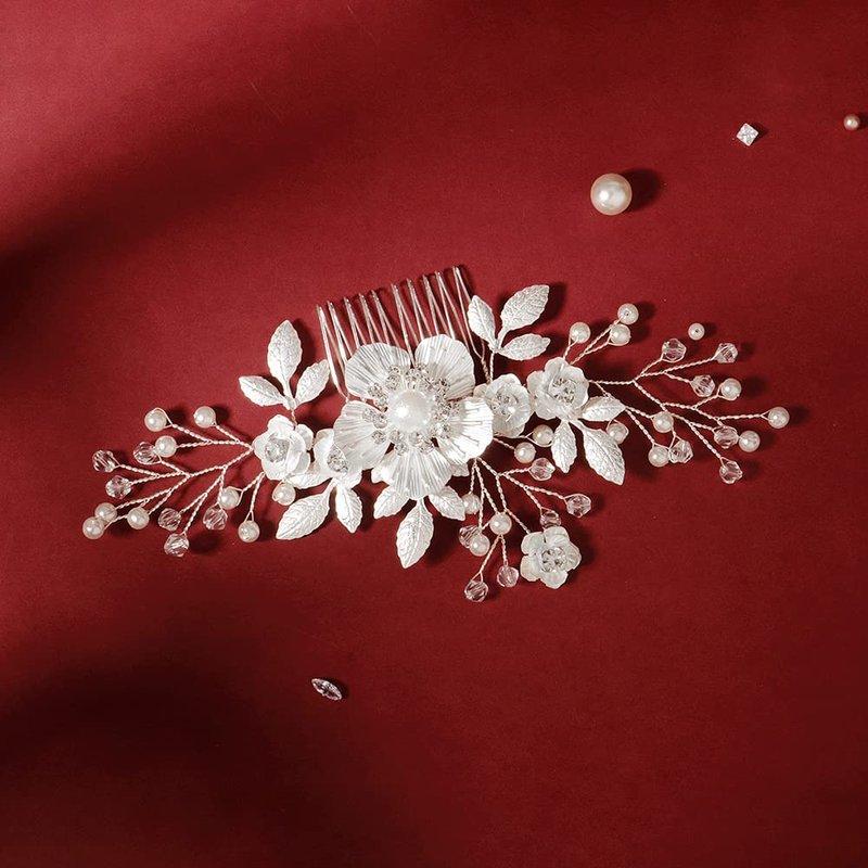 Sliver Flower Hair Comb Leaf Wedding Hair Comb Bridal Hair Accessories For Brides and Bridesmaids