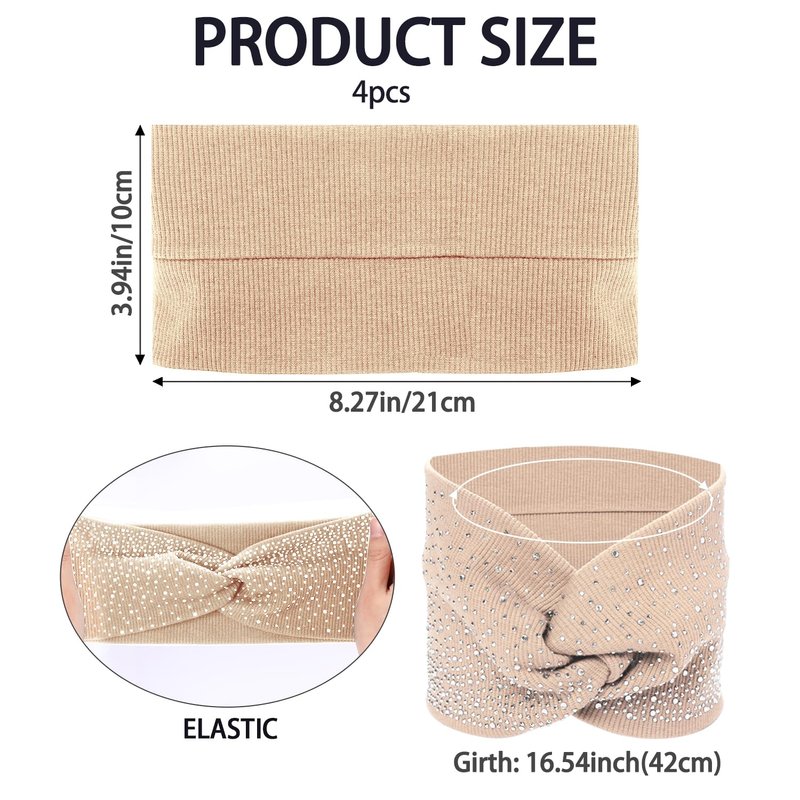 - 【Package List】You will receive 4 dressy headbands for women, including 4 different colors light gray, khaki, burgundy, black. Product size is 7.48* 7.08* 0.98 inches(19*18*2.5cm).
