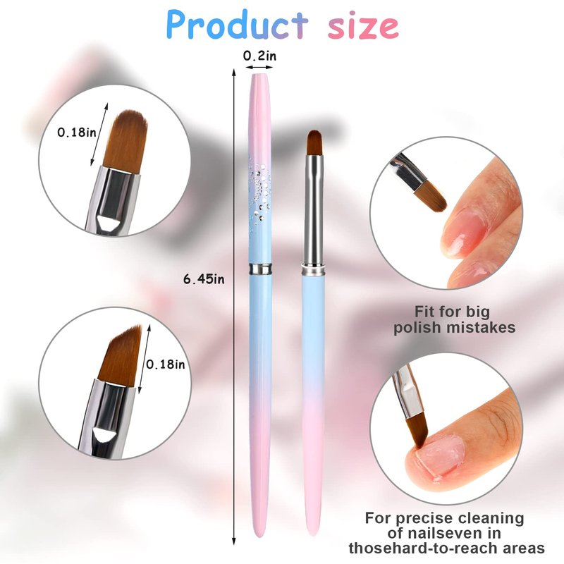 - EASY TO USE & Clean - Dip the gel nail brush in the nail polish remover, then place the nail art brush into the desired area to clean up excess nail polish on the cuticle. The premium soft bristles can be easily cleaned with gentle non-acetone nail polish remover. Note: Always clean your nail art brush immediately after use.