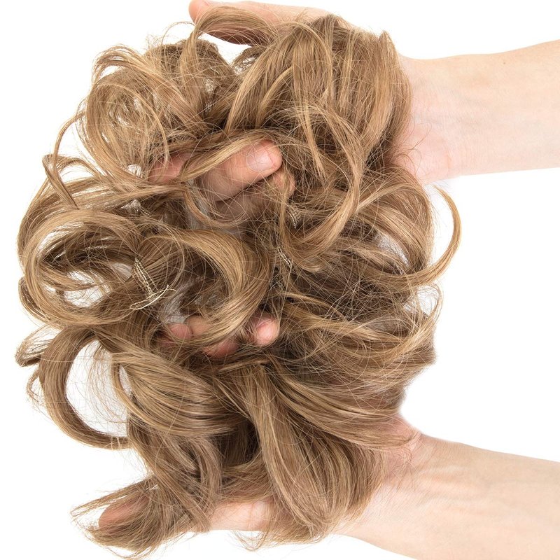 Scrunchie bun up do hairpiece with elastic hair tie, secure and comfortable to wear, perfect bride hair extensions,High quality bun hairpieces that look like real hair. This SLLIE heat-resisting synthetic fibre hair bun extension creates an elegant ponytail accent that can be worn for a prom, wedding, or evening out.Our hair is soft and comfortable and Perfectly increase your hair volume,which makes you transform your look in seconds. Besides,the first time you used,slight hair loss is a normal phenomenon just like huamn hair and When you got the item,it maybe a bit messy because it was in a packdge.You can comb it with your finger gently,then it will look as beautiful as the picture. Care Tips: 1) Wash with cold water. 2) Add a dash of shampoo and wash gently. 3) Rinse thoroughly in warm water, again working from the top down. 4) Never twist, wring, squeeze your hair extension, allow it to air dry. 5) Do not use curling irons, blow dryers, or hot styling instruments.