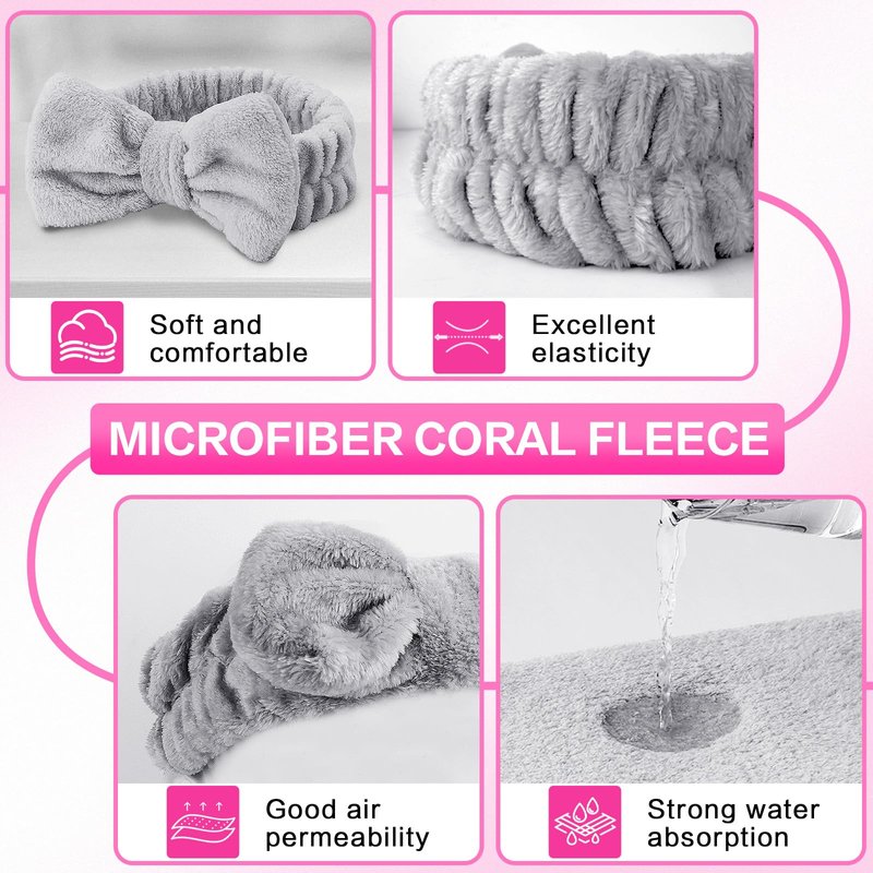 Cute and Practical Towel Headband Soft & Comfortable: The skin care head band is made of soft coral velvet material, which is comfortable, fluffy, skin-friendly and enduring. Excellent Elasticity: The fluffy headband is very elastic and can stretch freely to fit your head. High elasticity helps keep the headband in place and prevents it from slipping. Strong Water Absorption: The beauty headband has high water and sweat absorption capabilities to prevent liquids from getting your hair wet. Applicable: Shower headband suitable for both adults and children. The texture is soft and does not harm children's skin.. The texture is soft and does not harm children's skin. Application: Face washing, makeup, skin care, yoga, spa, shower, exercise, housework.