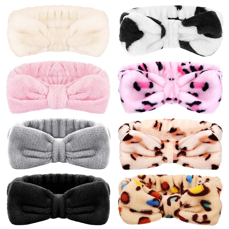 SLNZAPTY 8 Pcs Face Wash Headband, Spa Makeup Headband, Fluffy Bow Facial Headband, Soft Microfiber Skin Care Head Wrap, Shower Bathing Yoga Hair Band for Women - Multicolor