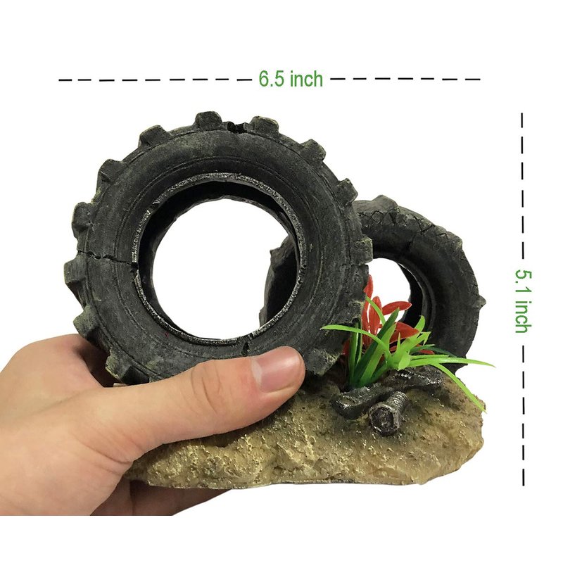 - 【MADE OF RESIN MATERIAL】 - This ECO-Friendly resin material non-toxic, also it won't fade when the time goes long. Colourful scenery makes your fish vitality.This Tyre serve as home that offers them a feel of their natural and living environment where they can swim around, hide or play. This add more fun to their lives and helps to relieve stress.