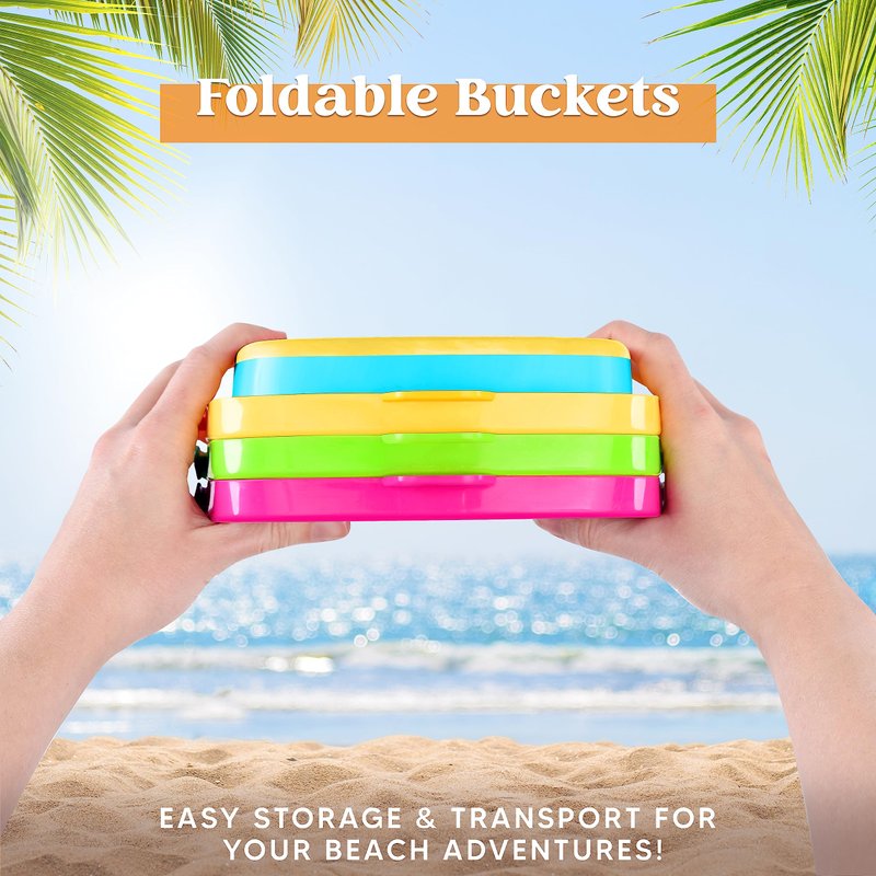 - Portable and Room Saving: With the foldable design, you can fold or unfold each sand bucket in seconds. It’s a great room saver, easy to carry and store in a beach bag, backpack, suitcase etc.