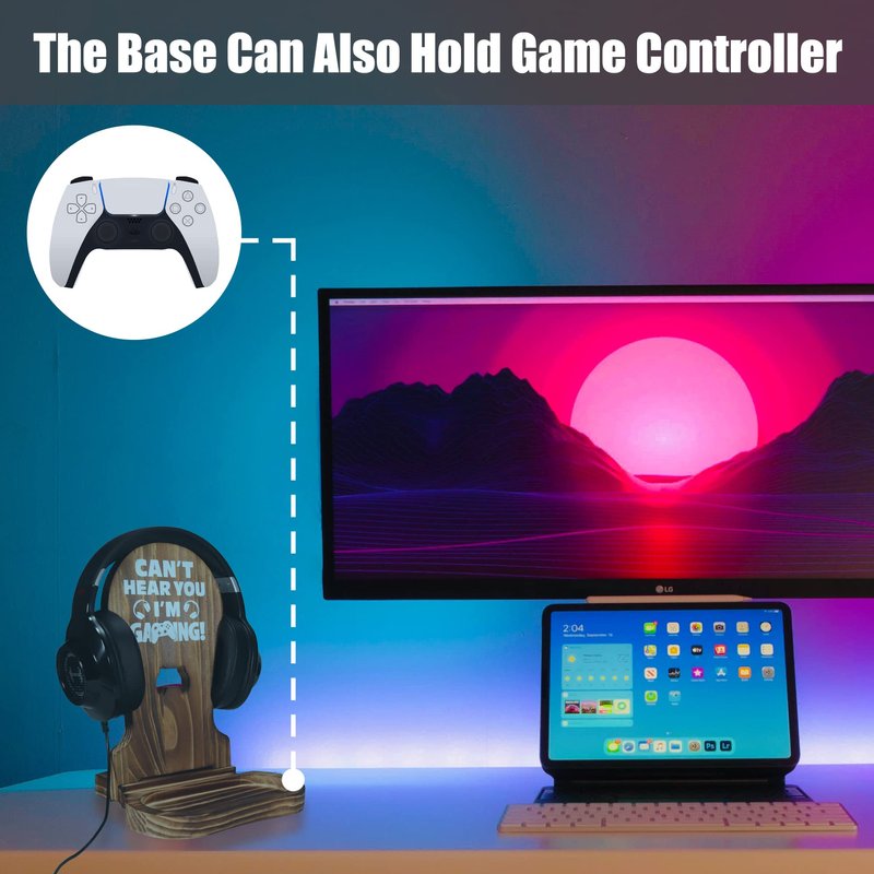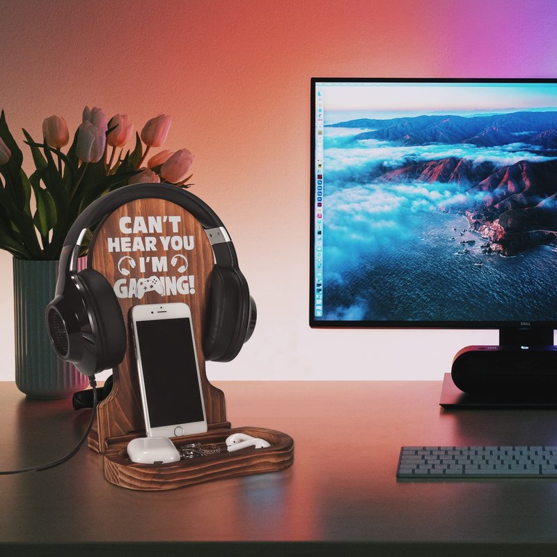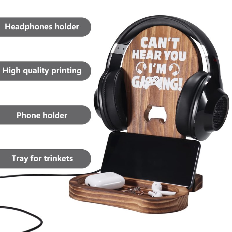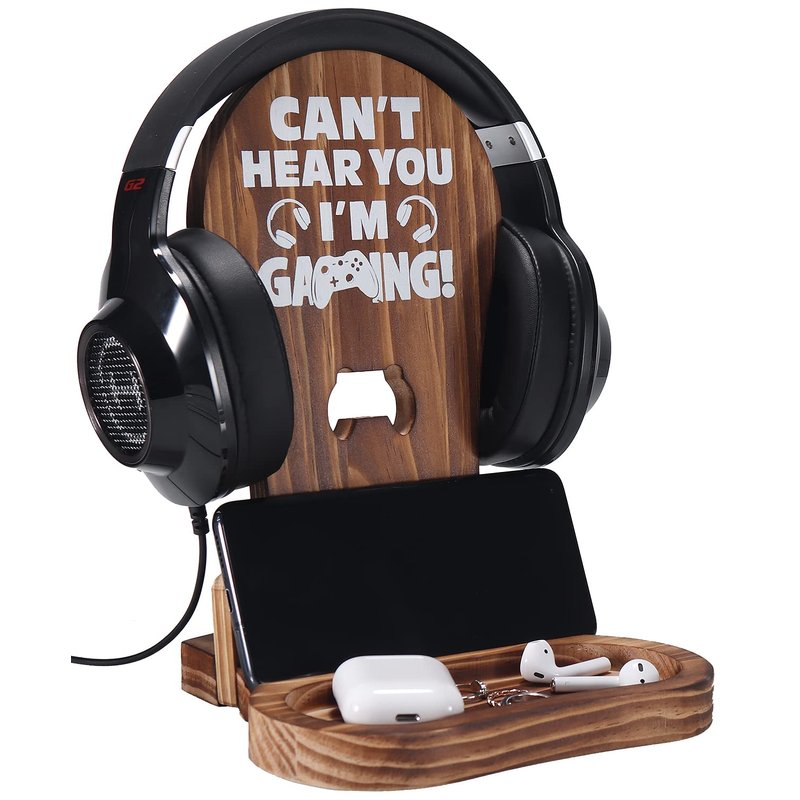 Slothoem Gamer Gifts for Teenage Boy, Gamer Room Decor for Man, Best Gifts for Son, Boyfriend, Husband, Gaming Accessories, Wooden Gaming Headset Stand for Gaming Desktop- Can't Hear You I'm Gaming